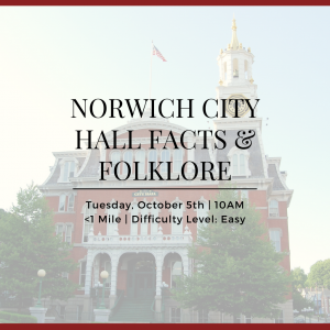 Walktober is about the outdoors but Norwich City Hall is a true work of art that should be visited. Completed in 1873, the building features "dungeon-like" cells in the basement, French Second Empire architecture, and many of the original furnishings....