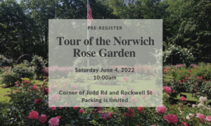 Please join the Norwich Historical Society on Saturday, June 4, 2022, at 10:00 a.m. for a special tour of the Norwich Rose Garden. Dave Candler, past president of the Connecticut Rose Society, will explain the different varieties of roses, give...