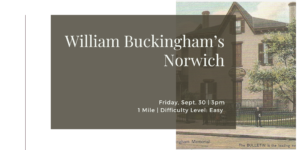A one-hour stroll of the downtown in the footsteps of William A. Buckingham, Mayor of Norwich, Civil War Governor, U.S. Senator. Walk starts at the Buckingham Memorial, 307 Main Street. On and off street parking available. This Walktober walk is...