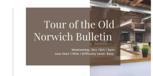 Please join us for a talk and tour of the former home of the Norwich Bulletin. For more than 100 years the Norwich Bulleting occupied 66 Franklin Street. Hear about what it was like to work at the Bulletin and...
