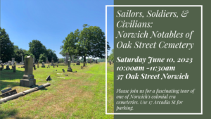 Please join us for a fascinating tour of one of Norwich's colonial era cemeteries. The Norwich City or Oak Street Cemetery was established in 1755 and overlooks much of the Norwich downtown area, along Cliff, Main, and Franklin Streets. On...