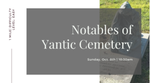 Please join local historian, Dave Oat, for a fascinating tour through the historic Yantic Cemetery. You will hear stories about the notable Norwich residents buried here, learn about victorian era funerary practices, and discover the history behind the impressive nineteenth...
